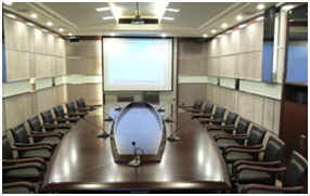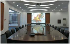 显示系统一般采用电脑、高清投影机和电子白板相结合的方式,同步显示与会议相关的图像、图形、图片、文字及语音信息资料,可以支持视频信号、各种制式的AV信号、TV射频信号、各种分辨率的VGA信号,同时交互式电子白板与计算机相连,投影机将计算机的内容投射到白板上,使用者可用手指或笔代替鼠标直接在交互式电子白板上操作各种应用程序,进行书写,对演示内容进行重点标注,与观众达到完全的交流,所有书写和标注内容均可自动保存至计算机,也可进行打印或E-mail输出以供未到会者浏览。